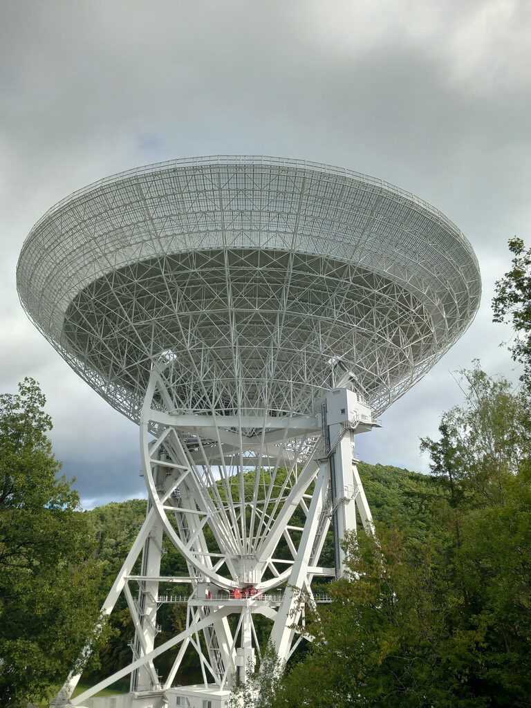 Zum Radioteleskop Effelsberg führte uns der Weg an diesem Tag. Mit 100 Metern Spiegeldurchmesser war es seit seiner Inbetriebnahme 1972 bis in die 2000er Jahre das größte bewegliche Radioteleskop der Welt und gehört heute noch zu den zwei größten.
