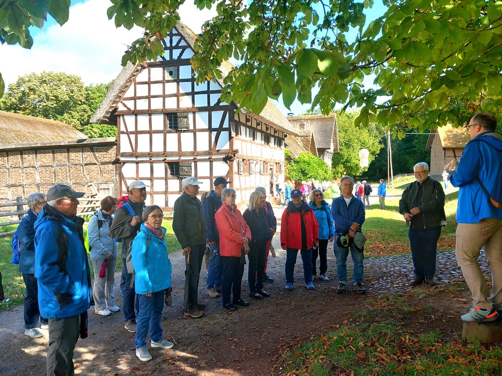 Mit rund 110 ha ist es eines der größten Freilichtmuseen Europas, mit derzeit 78 historischen Gebäuden aus der ehemaligen preußischen Rheinprovinz. Es wurde 1961 eröffnet und wird ständig erweitert. Bei der zweistündigen Führung wurden Bauernhöfe, Windmühlen, Werkstätten, eine Zehntscheune, Schul- und Backhaus, Tanzsaal und Kapelle je nach ihrer Herkunft in Territorien zu vier Baugruppen zusammengefasst. Äcker, Bauerngärten und Obstwiesen runden das Ganze ab. Die Objekte kommen vorrangig aus dem Westerwald/Mittelrhein-Gebiet, aus Eifel/Voreifel, vom Niederrhein und aus dem Bergischen Land und stellen das Leben ab dem 15. Jahrhundert dar. Etliche ließen sich nach der Führung vom „Marktplatz Rheinland“ mit Objekten aus der Zeit nach dem 2. Weltkrieg begeistern. Neben einem Quelle-Bungalow und einer Notkirche gibt es auch eine Milchbar, einen Zeitungskiosk und vieles andere.